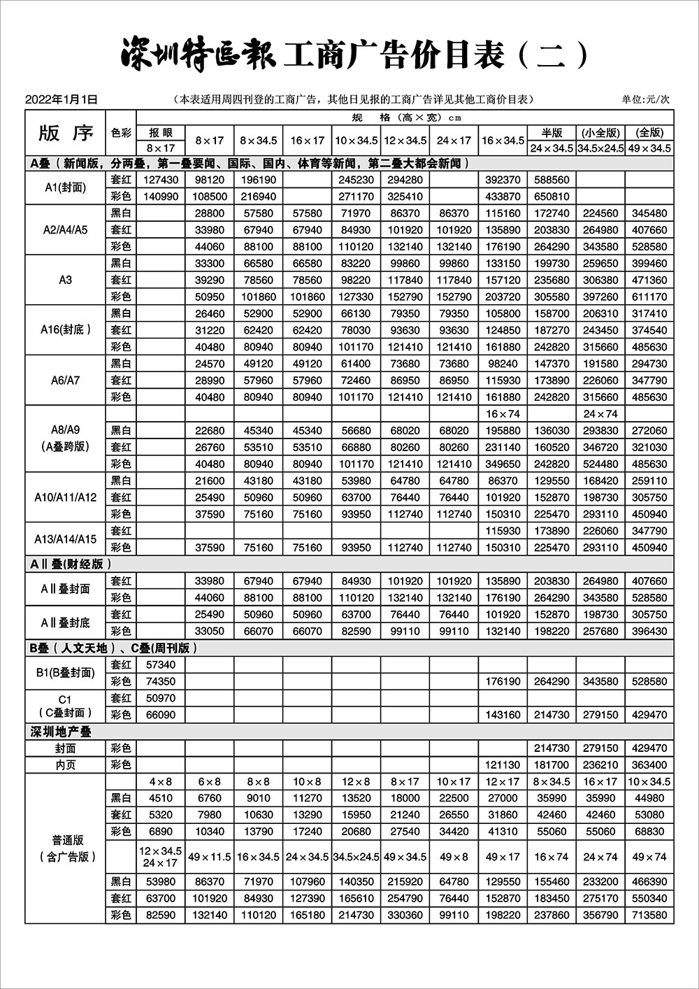 深圳特區(qū)報(bào)工商廣告價(jià)目表