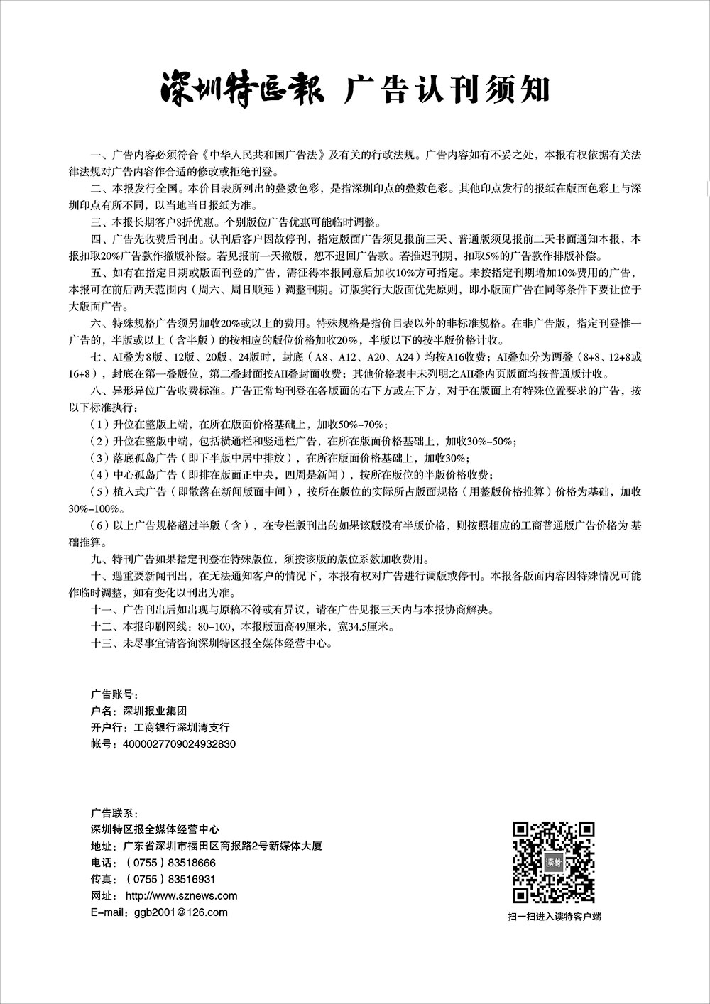 深圳特區(qū)報(bào)廣告認(rèn)刊須知