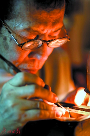 燙金絲印、公章膠印、原子印章……在和平西路9號有一家毫不起眼的刻章店——秋記刻章工藝,這里記錄著一段百年三代人的篆刻家族史。19世紀末期,叔公項信南隨著戲班來到廣州,成為一位金石篆刻名家;20世紀初,幼年喪父的項少南來到省城投奔叔叔項信南,也成為知名篆刻藝人,直到90歲高齡仍篆刻不輟;上世紀60年代,項少南之子項頌秋子承父業(yè),如今已入行57年。如今,隨著機器刻章的興起,從秋哥變成秋叔的71歲項頌秋卻面臨著手藝失傳?!叭绻幸懔Φ娜讼雽W,我愿意免費教學?!彼f。