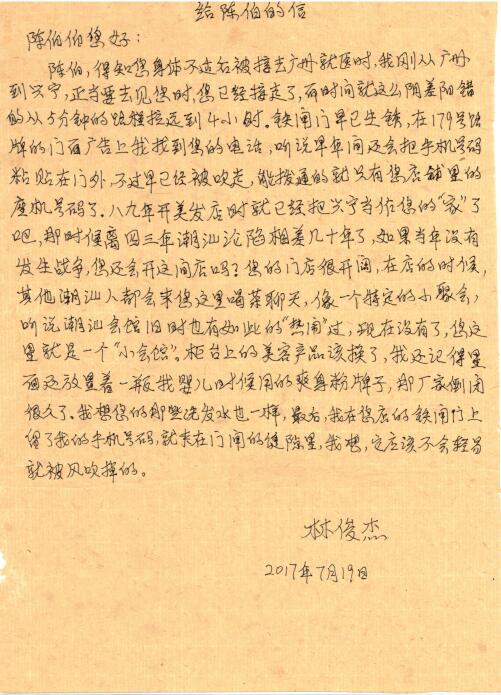 《給陳伯的一封信》/行為、影像/20CMX 15CM