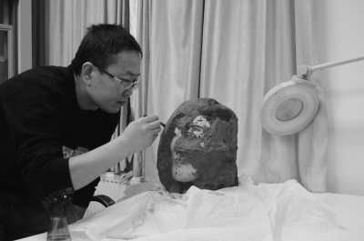 和我們拼圖不同,文物是立體的,大型、復(fù)雜的,要分多個局部分別粘接,不但要頭腦中勾畫立體圖,還要講究歸位的次序,考慮后面的部分是否放得進去。前面一個小問題,都會導(dǎo)致最后合拼時茬口對不上。而且,修復(fù)師手中的每一個碎片都是惟一的,已粘接上的殘片輕易不能打開重來,那樣很可能對文物造成新的傷害。