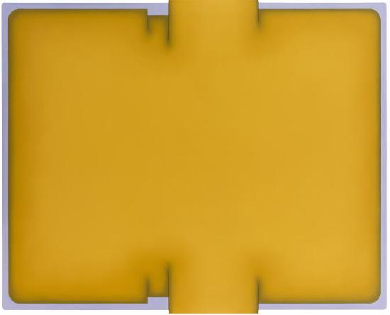 在新作中,李平逐漸取締了前一個系列作品畫面中的平行波動,垂直空間以及明顯的光源和光影表現(xiàn);同時他作品中的色度,盡管依舊是大面積的純色,畫面周邊互補色的處理使得整個形體在一種二元邏輯中行進。當光源被壓制,畫面主要的動作要依靠當中的短線條以及拼貼的邊框,像是要完成一個束起、扎好的動作,顯然這些動作與顏色相互對峙,并且由于動作以及邊框凹凸比例的設計,使得微微鼓動的純色形成一個些微令人迷醉的空間。