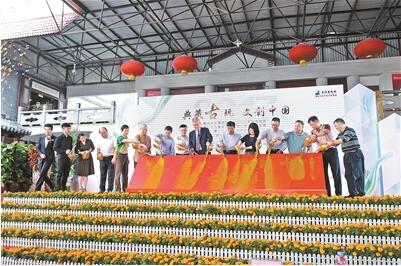 領(lǐng)導(dǎo)和嘉賓將金沙倒入啟動儀式,一起為第33屆全國古玩珠寶藝術(shù)品交流會啟幕。