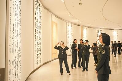 記者了解到,此次展覽從全軍遴選20位書法骨干,特邀36位著名軍旅書法家,嚴(yán)格按照“定人員、定內(nèi)容、定尺幅、定書體”的標(biāo)準(zhǔn),潛心創(chuàng)作打磨,力求以形神兼?zhèn)?、文質(zhì)兼美的優(yōu)秀作品,給觀眾以強(qiáng)烈的藝術(shù)感染、深刻的思想啟迪和豐厚的精神滋養(yǎng)。