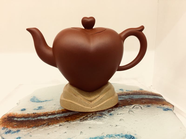 本次文博會上唐朝霞帶來了最新作品《心心相印》,在樣式上,此壺突破傳統(tǒng)的光貨、花貨、筋囊貨三大類,以一個立體飽滿的愛心形狀作為壺身;在壺蓋設(shè)計上,與壺身愛心弧度鑲嵌,融為一體,可見工藝之高超。壺鈕壺身亦設(shè)計為愛心之狀,兩心上下、大小交輝相映、韻味十足。