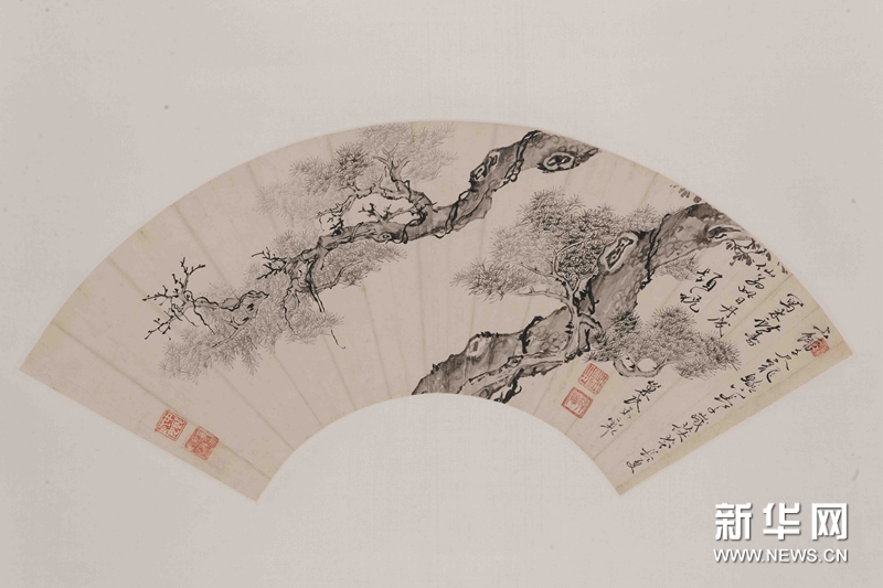 蔡含,明末清初女畫(huà)家。字女蘿,號(hào)圓玉,江蘇吳縣(今蘇州)人。著名文人冒襄側(cè)室。擅山水、花卉、禽魚(yú)。蔡含常與冒襄另一妾金玥合作繪畫(huà),人稱“冒氏兩畫(huà)史”。世人常知冒辟疆與董小宛,鮮知冒氏有一位工繪畫(huà),尤其擅畫(huà)古松的側(cè)室蔡含。閨閣女子,能放筆畫(huà)松,且筆墨老辣勁健,實(shí)屬女中才子。后來(lái)“虞山派”詩(shī)人鄧林梓作《畫(huà)松歌》贊她:“少君貞心比老松,千巖萬(wàn)壑在胸次。四方乞畫(huà)無(wú)虛時(shí),繚綾側(cè)理滿篋笥。每因能事苦迫促,君公墻東避不啻?!闭f(shuō)明她的古松圖在當(dāng)時(shí)士大夫階層十分搶手,這幅古松獻(xiàn)壽即是證明。一株盤(pán)回老松,簇簇松葉攢針于枝,根根有力,層次分明,扇面雖小,卻有大氣象。加上冒襄對(duì)題,是不可多得的琴瑟唱和之作。為《中國(guó)古代書(shū)畫(huà)圖目》唯一著錄的蔡含作品。