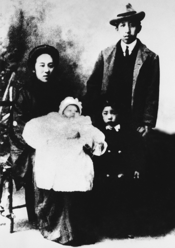 1909年,廖仲愷、何香凝攜女兒廖夢(mèng)醒(前右一)、兒子廖承志(前左一)在東京時(shí)合影