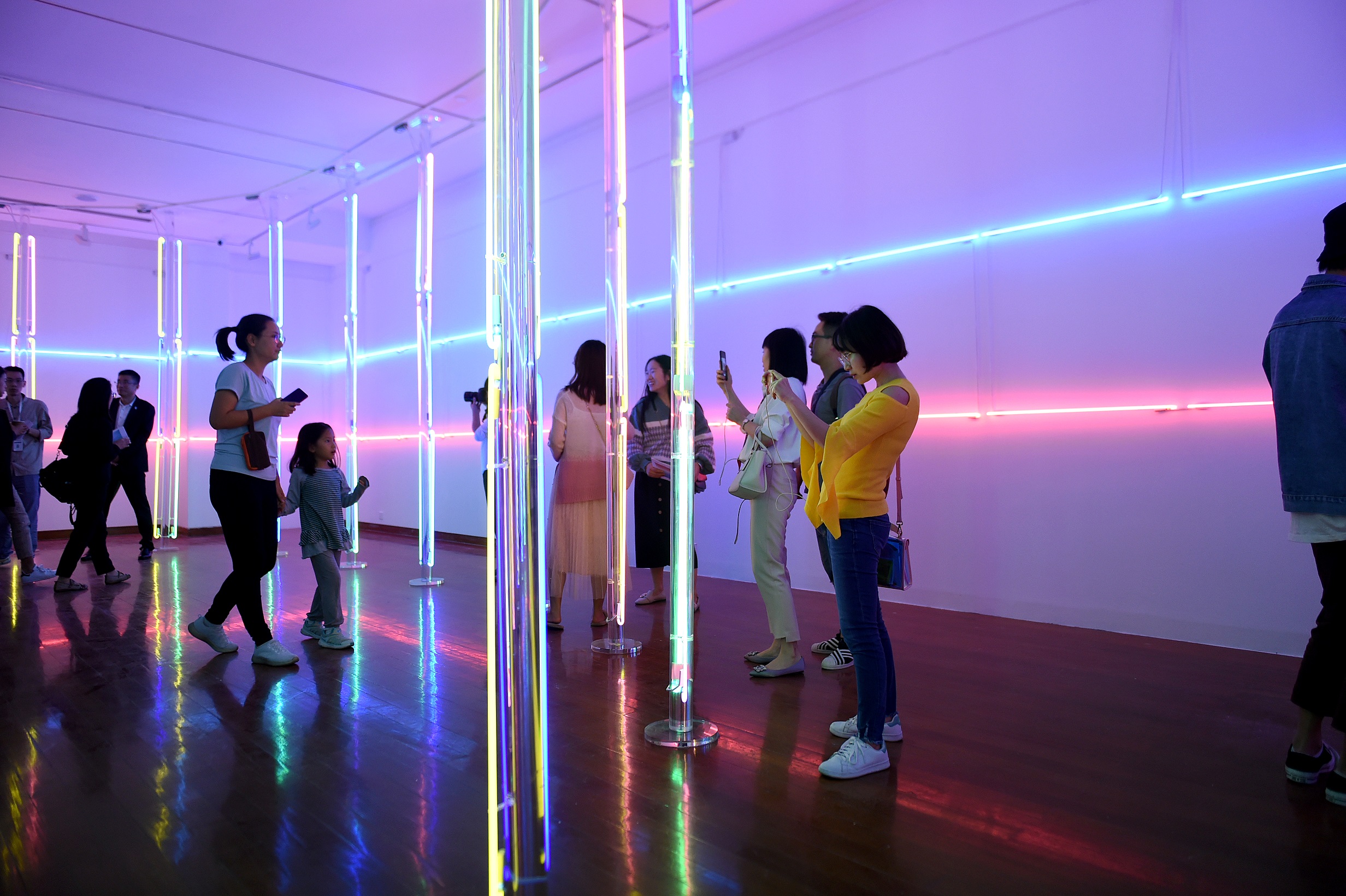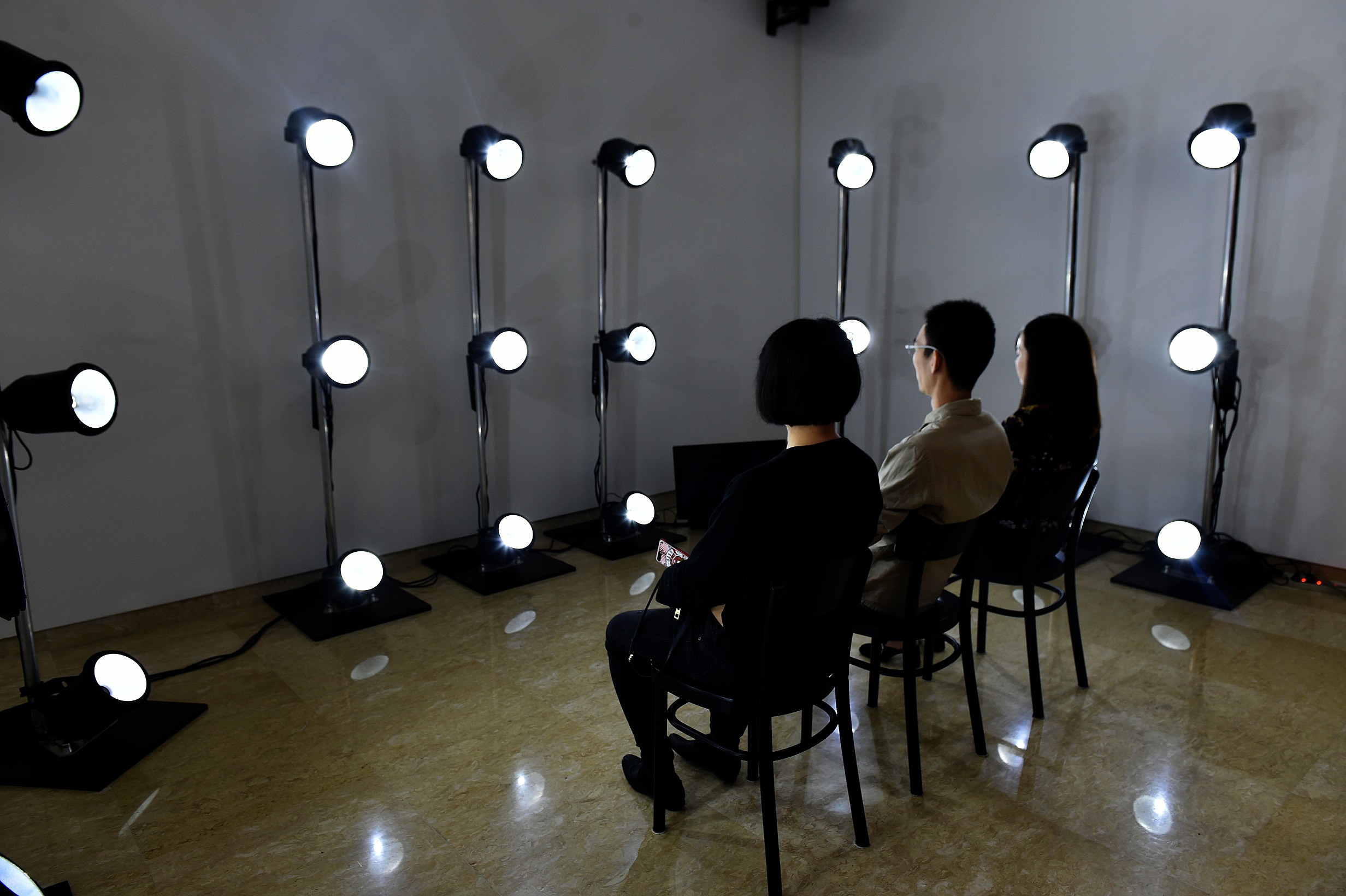 很多觀眾排隊(duì)體驗(yàn)丹麥館的《斷電》,它由27根頻閃觀測器燈圍著三張座椅。觀眾坐下,閉上眼睛……通過預(yù)設(shè)好的燈光順序,閉上眼睛眼前將會呈現(xiàn)幾乎會引起幻覺的燈光圖案。同音樂一起,制造了一場浸入式的感官體驗(yàn)。通過調(diào)動眼球與大腦的敏感性,看它們?nèi)绾萎a(chǎn)生視覺“斷電”。