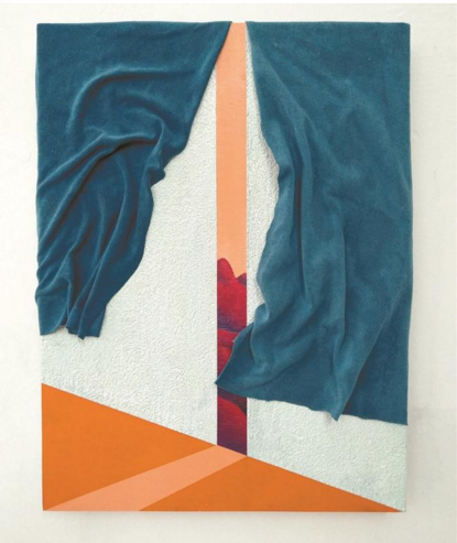 另一方面,青年藝術(shù)家們的創(chuàng)作又明顯與深圳這個(gè)急劇擴(kuò)張的城市都市化景象發(fā)生了疊合。比如林海東的《紅山》,運(yùn)用布面油畫與真實(shí)的絨布營(yíng)造了一道門縫外的風(fēng)景,暗紅的土地帶著一束光似乎就是它本身的倒影;江安使用極簡(jiǎn)的方式,彎曲的鐵條、折疊的木板、簡(jiǎn)單的霓虹燈便組成了他的《木門》;武學(xué)斌將無(wú)數(shù)由遠(yuǎn)及近的立方體組成了他的《城市》,矛盾的空間、散亂的信息以及兩側(cè)高聳的堅(jiān)墻述說(shuō)了置身于城市之中人的壓力。
