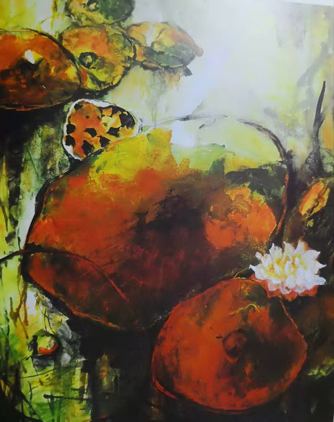張玉馨《西觀荷塘》水墨丙稀油畫系列作品之三。
