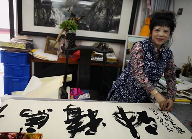 說起書法,張玉馨臉上的自信更多了一份坦然,她說,書法就是從傳統(tǒng)過來的,書到最高境界是畫,畫到最高境界是書,它們是相通的。如今的張玉馨對各種字體的書法可謂是駕輕就熟,游刃有余?!斑@里有我自己的東西,但我還要超越和進(jìn)步”。今天的張玉馨已經(jīng)完成了畫布上的一系列超越,變得更加淡定從容。不過,她表示,遠(yuǎn)方的路沒有終點(diǎn),她將堅(jiān)守在那塊屬于自己的“一畝三分地”上,繼續(xù)打拼自己想做的事。在屬于她的單純世界里,發(fā)現(xiàn)和創(chuàng)造藝術(shù)美成了她生活的主旋律。我們有理由期待:一直在追夢的張玉馨總能給大家不斷的驚喜!