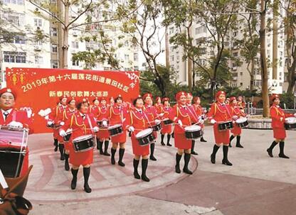 景華社區(qū)民俗歌舞大巡游活動(dòng)包括各式各樣的民族舞蹈、大合唱、古箏、手風(fēng)琴等表演。今年的民間色彩更加濃厚,節(jié)目全部由社區(qū)居民自編自演,大朋友小朋友齊參與,現(xiàn)場(chǎng)吸引了近數(shù)百居民前來觀看。歌舞展演結(jié)束后,由13支表演隊(duì)伍的演員組成巡游隊(duì)沿著景田路、蓮花路、商報(bào)東路進(jìn)行巡游,圍觀的居民朋友紛紛加入巡游隊(duì)伍里,營造和諧、濃厚的轄區(qū)文化氛圍。