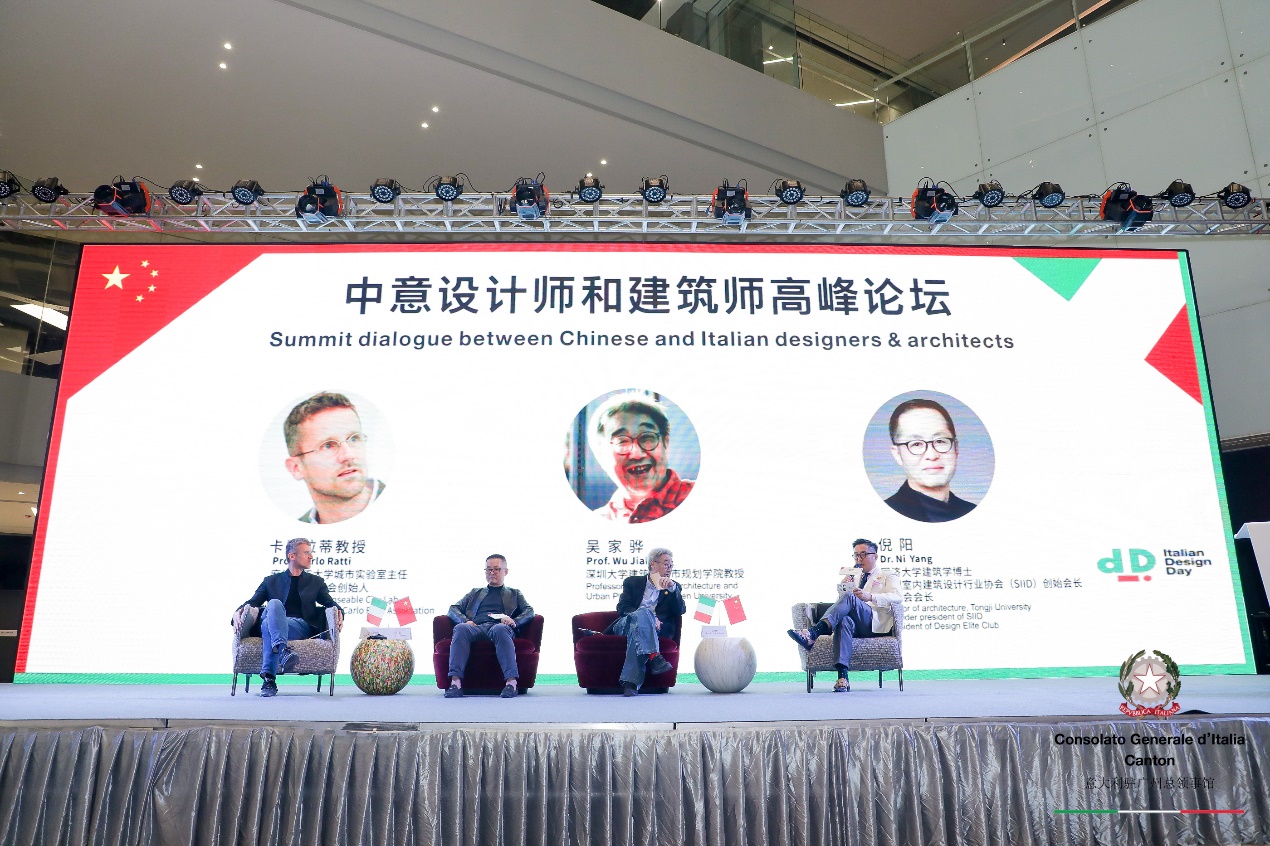 活動(dòng)還邀請(qǐng)到深圳大學(xué)建筑與城市規(guī)劃學(xué)院教授吳家驊、深圳室內(nèi)建筑設(shè)計(jì)行業(yè)協(xié)會(huì)(SIID)會(huì)長倪陽博士與Carlo Ratti (卡洛·拉蒂)教授進(jìn)行論壇對(duì)話。吳家驊教授從中國人的基礎(chǔ)思維,民族性上看待城市未來這一概念。他認(rèn)為人口、土地、資本綜合實(shí)力是決定未來城市的核心。同時(shí)他希望,在未來,中意兩國能夠在城市設(shè)計(jì)上有更加深入的合作,達(dá)到“東學(xué)西建”的影響力,把中國設(shè)計(jì)師的創(chuàng)造性激發(fā)出來。倪陽博士則表示,科技對(duì)于城市未來的影響力是極大的。大數(shù)據(jù)的發(fā)展,已經(jīng)能夠做到對(duì)未來城市的預(yù)測,而設(shè)計(jì)這樣人文類的工具,與科技的結(jié)合,為未來城市帶來的前景是可觀的。