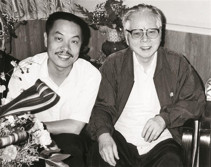 陳湘波(左)與關(guān)山月先生合影。(拍攝于1997年9月)