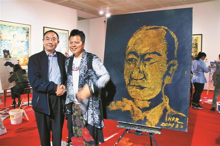 當天,全至科技創(chuàng)新園內(nèi)的數(shù)十名員工在“演畫”創(chuàng)始人黃鳳榮的帶領(lǐng)下體驗了拼貼創(chuàng)作的樂趣?,F(xiàn)場黃鳳榮展示了潑粉、拼貼等多種演畫手法。他的“瞬時金粉畫”因其戲劇性的藝術(shù)效果令現(xiàn)場掌聲雷動。