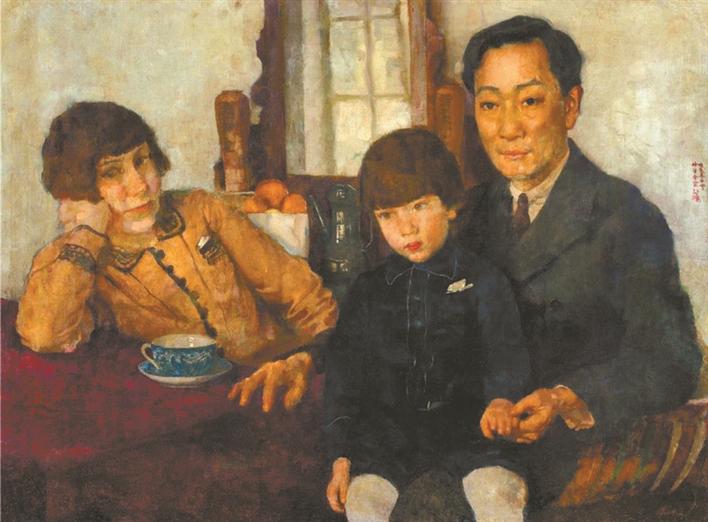 《楊仲子全家?!芬彩俏χ鳎猿领o之態(tài)吸引觀眾駐足,忍不住與畫中人對視。這是徐悲鴻的佳作,畫的是好友楊仲子一家。楊仲子是中國最早留學(xué)歐洲研習(xí)西方音樂的先驅(qū),回國后傳授西方音樂,創(chuàng)建并推進中國音樂教育教學(xué)體制,倡導(dǎo)改進并推動民族音樂發(fā)展。這件創(chuàng)作于1928年冬天的作品,徐悲鴻畫出了楊仲子和妻子、孩子閑適的狀態(tài)。畫中三人神態(tài)各異,在藝術(shù)家的傳情畫筆下,觀眾似能看到他們恬淡表情之后的情緒。