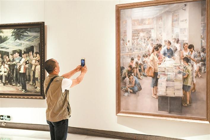 開(kāi)窗便看見(jiàn)了美麗的風(fēng)景。開(kāi)展當(dāng)天美術(shù)館剛一開(kāi)門就吸引了不少市民前來(lái)觀看。他們懷著迫切的心情,第一時(shí)間趕來(lái),一睹美術(shù)作品中的“深圳故事”。