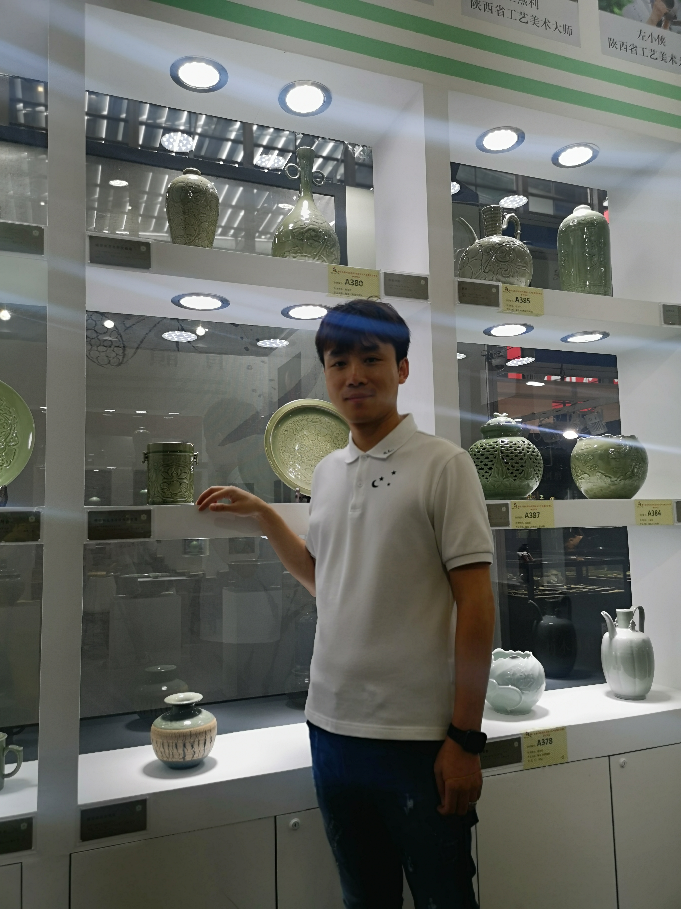 據(jù)了解,此次文博會中國工藝美術(shù)大師孟樹鋒先生共帶來了十六件作品參展,同時還有省級以上的美術(shù)大師作品,他們沉穩(wěn)雄渾,精美絕倫,代表了耀州青瓷年輕一代的工藝及水準(zhǔn)。