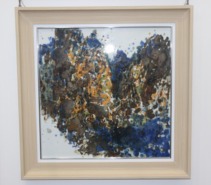而在此次程云教授展出的作品中,除卻傳統(tǒng)瓷板畫外,一種特別的板畫吸引著記者目光。程云教授介紹到“這是一種新的板畫即“青花+顏色釉”板畫,是一種取青花及顏色釉二者之精華的特殊板畫,既有這青花的明靜素雅,也有著顏色釉的歡快明亮,不同的人,不同的審美都能在這種板畫中找到自己喜歡的元素?!?/p>