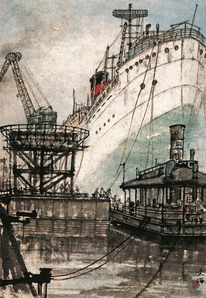 宋文治對(duì)廣東地區(qū)的關(guān)注始于20世紀(jì)的60年代。他在1960年參加江蘇國(guó)畫(huà)院組織的行程二萬(wàn)三千里的寫(xiě)生活動(dòng)中,經(jīng)過(guò)廣州時(shí)就創(chuàng)作了《廣州造船廠》,罕見(jiàn)地運(yùn)用山水畫(huà)技法表現(xiàn)現(xiàn)代工業(yè)題材。