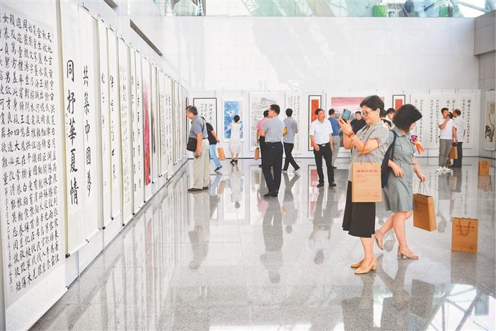 深圳特區(qū)報訊(記者尹春芳/文胡蕾/圖)一幅幅洋溢著激情的書畫作品,飽含對時代的歌頌。為慶祝中華人民共和國成立七十周年,由深圳市書畫家協(xié)會策劃,并聯(lián)合深圳民族精神和中國發(fā)展研究中心主辦,深圳市嘉鑫輝煌公司投資有限公司承辦,深圳汕尾商會協(xié)辦的“向祖國致敬——深圳書畫作品展暨感恩筆會”于昨天下午在深圳市民中心C禮廳開幕?,F(xiàn)場高朋滿座,氣氛熱烈,彌漫著濃厚的藝術(shù)氣息,展現(xiàn)了鵬城深厚的藝術(shù)底蘊(yùn)。