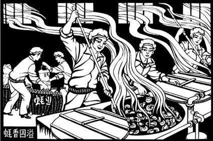 饒凱玉從來(lái)沒學(xué)過(guò)國(guó)畫,也沒接受過(guò)正規(guī)的美術(shù)教學(xué)。在集訓(xùn)一個(gè)月期間,老師給她一本書,建議她向國(guó)畫發(fā)展。她發(fā)現(xiàn)書里有幾幅小剪紙圖很有趣,突然勾起她的創(chuàng)作靈感,為什么不畫農(nóng)村題材呢?她決定創(chuàng)作農(nóng)村“四員”(出納、會(huì)計(jì)、保管、記工員),“四員”是當(dāng)時(shí)典型的社會(huì)人物?!拔也灰媷?guó)畫,要刻紙成畫。”饒凱玉說(shuō)。當(dāng)時(shí),她先用毛筆在紙上勾勒出形象,修改定稿,后用印寫紙反轉(zhuǎn)復(fù)印在刻紙上,再用刀刻紙成畫。