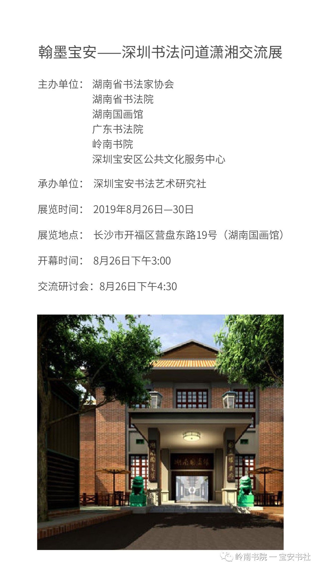 展訊:問道瀟湘——深圳書法交流展將于8月26日下午3點在湖南國畫館開幕!