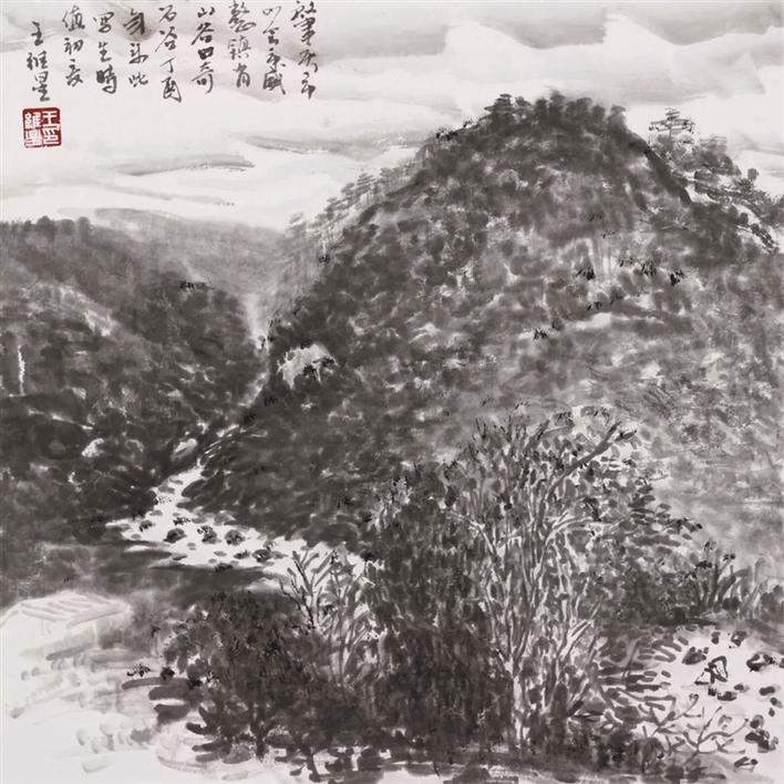 著名美術(shù)評(píng)論和史論家陳傳席曾這樣評(píng)價(jià)王維星的山水畫:“以書入畫,線條的書法藝術(shù)感突出,爆發(fā)力強(qiáng)。在繼承傳統(tǒng)繪畫中吸收了當(dāng)代多種文化元素再造語言的形式?!?/p>