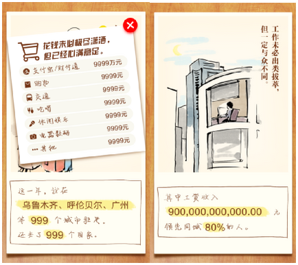 花錢歸花錢,但也得看看口袋進(jìn)了多少,畢竟消費(fèi)并不能代表實(shí)力,收入排名才是衡量“土豪”的指標(biāo)。在收支的橫向比較上,第三方平臺(tái)只能告訴我們錢花在哪里了,消費(fèi)打敗了多少人,而招商銀行的年度賬單不僅能呈現(xiàn)工資和理財(cái)收入怎么樣,還能告訴我們收入在同城的排名。在微信朋友圈一直潛水的高中同學(xué)老陳,最近往朋友圈分享了個(gè)他的招行年度賬單:工資收入領(lǐng)先同城80%的人。一時(shí)驚呆了眾多同學(xué),紛紛點(diǎn)評:茍富貴,勿相忘。