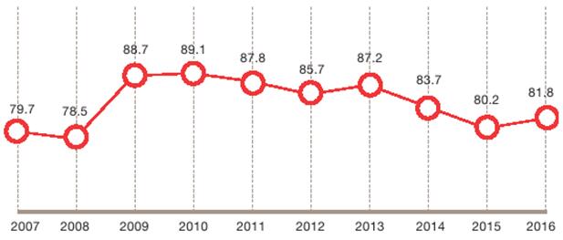 根據(jù)本次發(fā)布的指數(shù)數(shù)據(jù)顯示,最近十年中,“中國(guó)汽車經(jīng)銷商金融發(fā)展指數(shù)”主指數(shù)分值變動(dòng)區(qū)間為78.5-89.1,其中2016年為81.8,較2015年有一定回升,反映過去一年汽車經(jīng)銷商金融領(lǐng)域重拾增長(zhǎng)勢(shì)頭。此外,據(jù)四個(gè)分項(xiàng)指數(shù)預(yù)計(jì),2017年行業(yè)景氣指數(shù)和流通渠道健康指數(shù)將保持總體平穩(wěn),信貸安全指數(shù)與融資活躍指數(shù)將有所提升。據(jù)悉,該系列指數(shù)今后將定期對(duì)外發(fā)布。