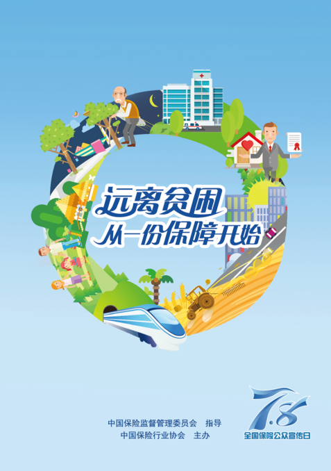 以7·8Logo為中心的光圈,周邊是日常生活的剪影,寓意著保險似陽光雨露,惠及人民群眾生產、生活的方方面面,反映了保險扶貧精準服務、缺口補位的功能。