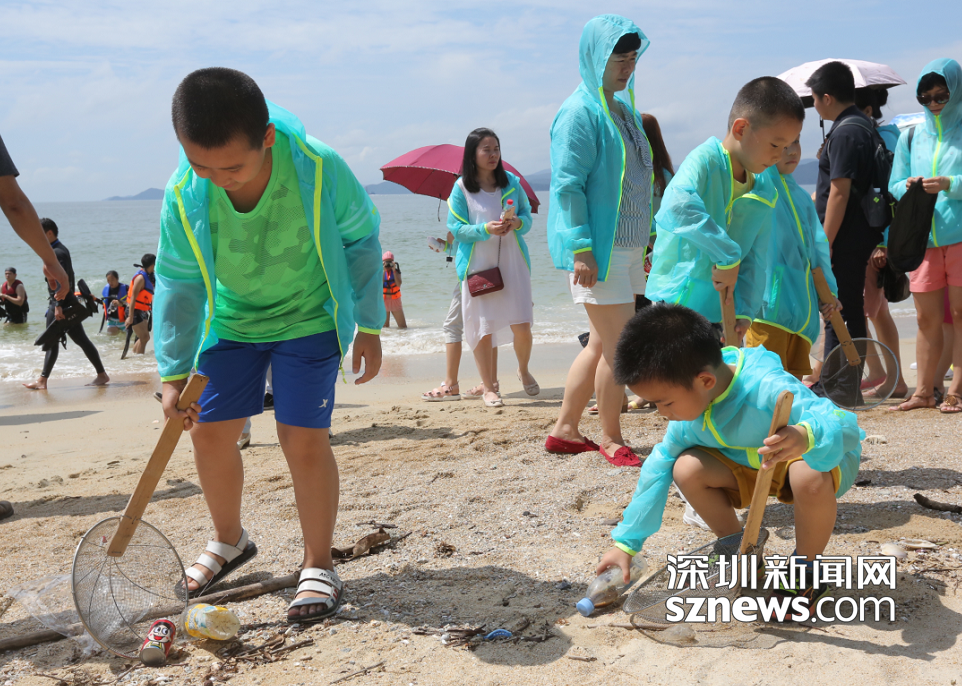 在當(dāng)天的活動(dòng)中,小朋友們除了學(xué)習(xí)海洋生物知識(shí)外,還在義工的帶領(lǐng)下,對(duì)梅沙一處公共沙灘進(jìn)行了一次公益大清潔,踐行自己的環(huán)保公益誓言。小朋友們和家長(zhǎng)一起合作,通過(guò)工具將海草、啤酒瓶、塑料袋等垃圾撿走。不到一個(gè)小時(shí),便將2公里的沙灘清理干凈。