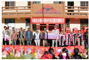 昆明分行歷任領(lǐng)導(dǎo)班子長(zhǎng)期以來(lái),認(rèn)真貫徹落實(shí)集團(tuán)、總行以及云南省委、省政府扶貧工作要求,堅(jiān)持“真扶貧,扶真貧”,把扶貧工作落到實(shí)處,積極踐行社會(huì)責(zé)任。從2005年開(kāi)始至今,分行對(duì)西盟縣的扶貧工作已經(jīng)連續(xù)開(kāi)展了12年,在總行的大力支持下,在全行員工的積極參與下,累計(jì)捐款捐物超過(guò)100萬(wàn)元。尤其是 2014年以來(lái),新一屆分行黨委按照云南省委省政府扶貧戰(zhàn)略部署,及時(shí)成立了“掛包幫、轉(zhuǎn)走訪”扶貧工作隊(duì),行領(lǐng)導(dǎo)多次帶隊(duì)親赴西盟扶貧點(diǎn)調(diào)研,中層干部及相關(guān)員工先后100多人次實(shí)地幫扶,并與貧困戶建檔立卡“結(jié)對(duì)子”。此外,分行大力創(chuàng)新扶貧模式, 除了捐款捐物,還通過(guò)開(kāi)展技術(shù)培訓(xùn),助力西盟《佤部落》全國(guó)巡演,借助“云南·購(gòu)精彩”電商平臺(tái),助銷佤山生態(tài)農(nóng)產(chǎn)品,采取形式多樣的金融扶貧措施,引領(lǐng)西盟縣探索“走出去”的可持續(xù)發(fā)展之路。搭建“陽(yáng)光書(shū)屋”,幫助貧困家庭孩子點(diǎn)亮希望之燈。捐助“母親水窖”,救助地震災(zāi)區(qū),開(kāi)展愛(ài)心拍賣、義賣等公益活動(dòng),籌集善款,捐贈(zèng)福利院,上善若水,大愛(ài)無(wú)疆。