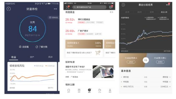 什么類別的理財(cái)產(chǎn)品適合你?高風(fēng)險(xiǎn)高收益or低風(fēng)險(xiǎn)低收益?來(lái)做個(gè)財(cái)富體檢吧,以前只能前往網(wǎng)點(diǎn)和客戶經(jīng)理面對(duì)面聊天,才能享受的財(cái)富體檢報(bào)告及資產(chǎn)配置建議,現(xiàn)在在招商銀行App6.0里就能完成,為你框定適合的投資類別。選定大類以后,哪幾支產(chǎn)品表現(xiàn)更好、值得關(guān)注?你既可參考大家都投的熱門理財(cái)主題,也可根據(jù)智能推薦,選擇和你搜索、購(gòu)買相似產(chǎn)品或資產(chǎn)結(jié)構(gòu)相近的人投資的產(chǎn)品。選定了感興趣的幾支產(chǎn)品,可用基金比較器,直觀對(duì)比感興趣的兩支基金的關(guān)鍵信息,業(yè)績(jī)表現(xiàn)、歷史走勢(shì)、交易規(guī)則、基金公司概況等一目了然,還可用定投模擬器,直觀查看這支產(chǎn)品在某一時(shí)期內(nèi)的定投表現(xiàn),輕松選出最適合的一支產(chǎn)品。