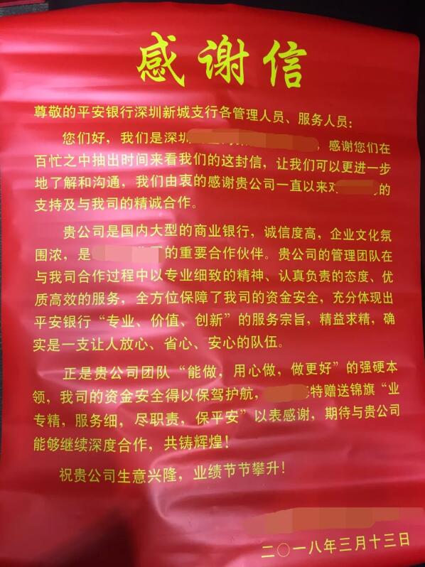 深圳新聞網(wǎng)訊 日前,平安銀行深圳分行分支行聯(lián)動想方設(shè)法勸阻客戶,成功堵截了一起詐騙,幫助客戶避免了500多萬元的資金損失,并協(xié)助警方抓獲了詐騙犯罪嫌疑人。此次成功堵截詐騙,得到了客戶和家屬的高度贊揚(yáng),專程送來了錦旗和感謝信,稱贊平安銀行“業(yè)專精、服務(wù)細(xì)、 盡職責(zé)、保平安”。