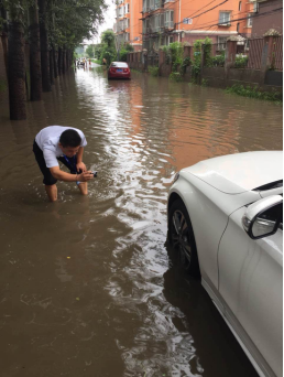 整個上午金浩田都處于連續(xù)不斷接收案件、處理案件中,“馬上過來!”是金浩田說的最多的一個詞語。中午時分,金浩田接到報案,一車輛行駛過程中熄火了,客戶被困在水中無法下車,萬分焦急。金浩田來不及吃午餐就火速趕往現(xiàn)場并聯(lián)系施救。到達現(xiàn)場后,他趟著過膝的臟水,進入水淹區(qū)域查勘現(xiàn)場。由于車輛已熄火停車,金浩田又與趕到現(xiàn)場的拖車司機一起將車輛推上拖車,駛離困境。不到30分鐘,金浩田將受損車輛處理完畢,將車輛損失降到最低。在結(jié)束了一天的查勘工作回到辦公地時,金浩田已是泥巴裹滿褲腿,汗水濕透衣背,但他卻說,“聽到客戶說‘你們來了,我們就安心了’,我們就感覺特別充實和幸福。”