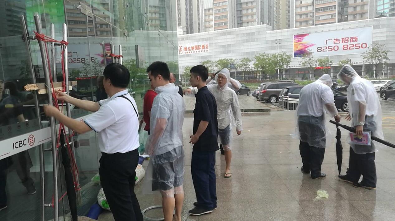 深圳新聞網(wǎng)訊 9日16日,中心附近最大風(fēng)力達(dá)14級的超級臺風(fēng)“山竹”來襲,廣東省發(fā)出新預(yù)警制度以來最大規(guī)模臺風(fēng)警報,深圳市進(jìn)入臺風(fēng)特別緊急防御狀態(tài),啟動防臺風(fēng)Ⅰ級應(yīng)急響應(yīng),全市實行“四?!?。為最大程度上保障客戶與員工的生命財產(chǎn)安全,不間斷為客戶提供優(yōu)質(zhì)金融服務(wù),工行深圳市分行在行領(lǐng)導(dǎo)的堅強(qiáng)領(lǐng)導(dǎo)下,全市各部門、各支行無懼風(fēng)雨、勠力同心、眾志成城,全力投入到“迎戰(zhàn)”臺風(fēng)的工作中。