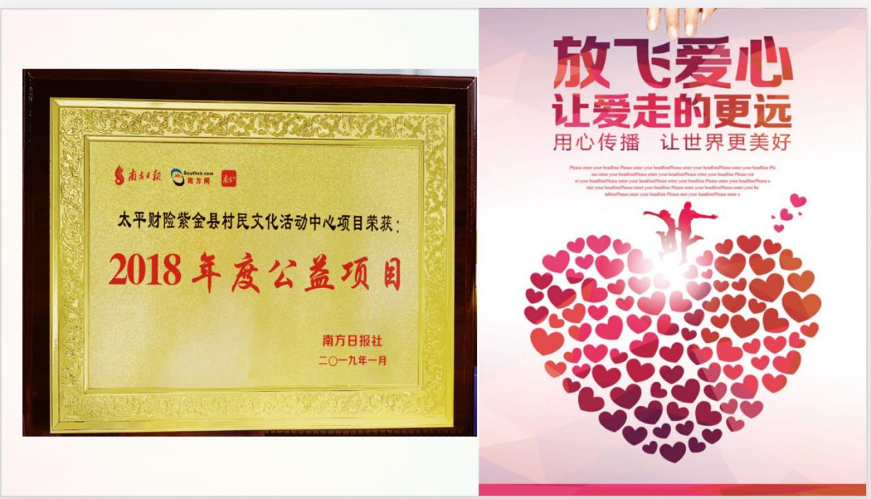 太平財產(chǎn)保險有限公司深圳分公司于2017年捐助紫金縣竹塘村村民文化中心工程,獲得了公益項目獎。太平財險負(fù)責(zé)人表示,在集團(tuán)“共享太平”的旗幟下,深圳分公司將繼續(xù)服務(wù)實體經(jīng)濟(jì),關(guān)注公益活動,助力鄉(xiāng)村振興,有力落實央企責(zé)任。