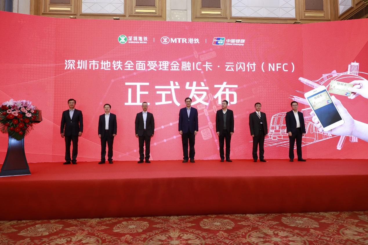 3月1日上午,五洲賓館內(nèi)舉行了“深圳市地鐵金融IC卡過閘服務(wù)”的啟動儀式。中國人民銀行副行長范一飛、深圳市人民政府副市長艾學(xué)峰、招商銀行總行副行長劉建軍、中國銀聯(lián)董事長邵伏軍、招商銀行深圳分行行長岳鷹、深圳地鐵董事長辛杰、港鐵(深圳)總經(jīng)理黃琨暐等相關(guān)領(lǐng)導(dǎo)出席了啟動儀式,并共同點亮LED燈幕,宣告深圳市地鐵8條線路的所有車站正式啟用過閘功能。