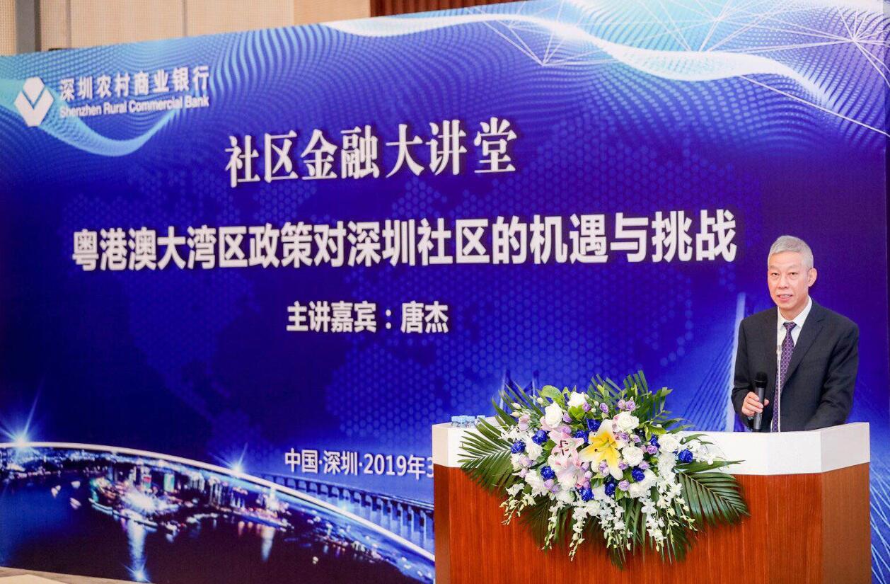深圳新聞網(wǎng)3月22日訊 22日上午,由深圳農(nóng)村商業(yè)銀行主辦的“社區(qū)金融大講堂”在深圳市資本市場(chǎng)學(xué)院揭開帷幕?;顒?dòng)邀請(qǐng)了龍崗區(qū)、坪山區(qū)及大鵬新區(qū)的社區(qū)企業(yè)代表參加,深圳農(nóng)商行董事長(zhǎng)李光安出席并致辭,特邀嘉賓唐杰教授作主題演講,共話粵港澳大灣區(qū)政策對(duì)深圳社區(qū)的機(jī)遇與挑戰(zhàn)。