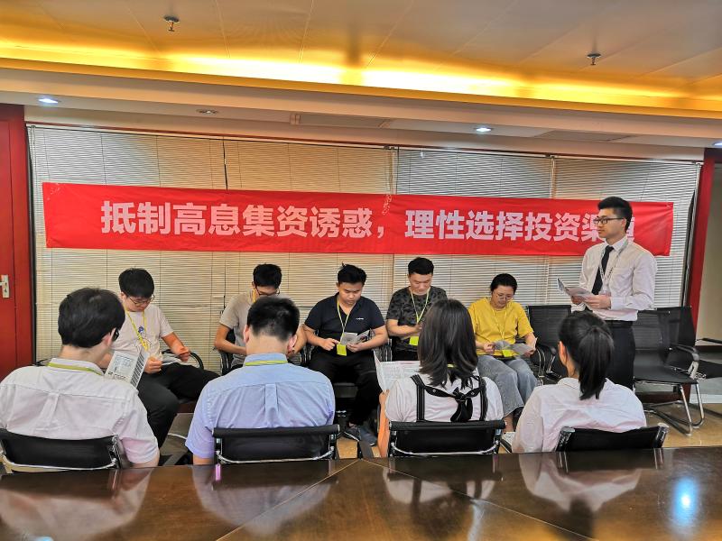 地鐵大廈支行則在深圳市銀服通企業(yè)管理咨詢有限公司舉行金融知識(shí)小講座。通過發(fā)放宣傳折頁、懸掛橫幅、現(xiàn)場講解等形式,緊緊圍繞識(shí)別抵制高息集資誘惑、做好財(cái)務(wù)規(guī)劃、選擇適當(dāng)?shù)漠a(chǎn)品投資理財(cái)?shù)戎R(shí)進(jìn)行講解。同時(shí)溫馨提示企業(yè)員工在辦理銀行卡、匯款、房貸還款等業(yè)務(wù)時(shí)的小竅門,獲企業(yè)員工一致好評(píng)。