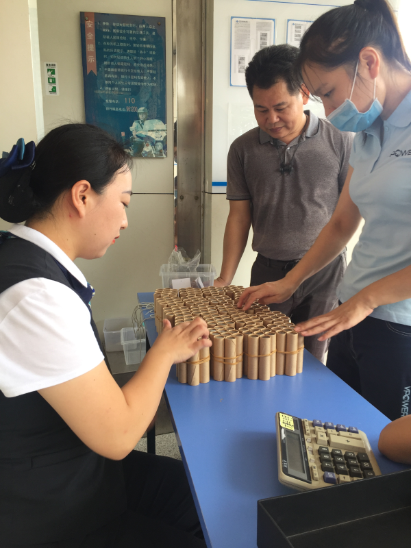 活動(dòng)當(dāng)天大雨滂沱,但社區(qū)居民兌換熱情依舊不減,經(jīng)過(guò)10個(gè)小時(shí)的清點(diǎn)工作,本次共回籠硬幣121802枚,其中1角66200枚,5角7084枚,1元48518枚,合計(jì)人民幣58680元。在兌換硬幣的同時(shí),深圳農(nóng)村商業(yè)銀行工作人員向周邊居民普及現(xiàn)金基礎(chǔ)知識(shí)和防范風(fēng)險(xiǎn)的技能。