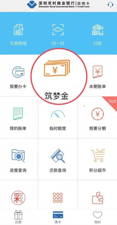 7、溫馨提示:如深圳農(nóng)商行信用卡APP首頁沒有“筑夢金”模塊,請至應(yīng)用市場搜索“深圳農(nóng)村商業(yè)銀行信用卡”,下載最新版本APP。