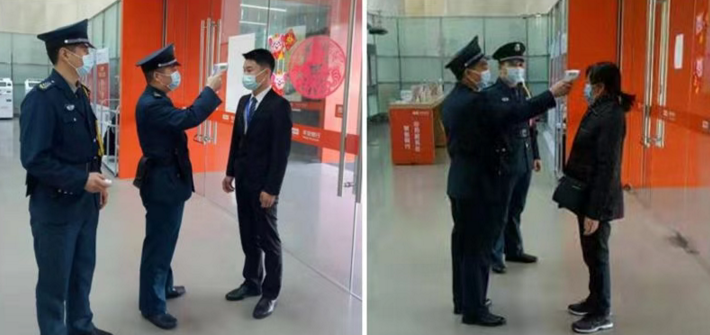 網點服務人員對進入營業(yè)網點的人員做好體溫測量,對于上門辦理業(yè)務的客戶,引導客戶佩戴口罩,鼓勵客戶使用自助機具或線上金融服務,每日定時對填單臺、簽字筆等客戶頻繁接觸部位進行消毒,保障客戶身體健康。
