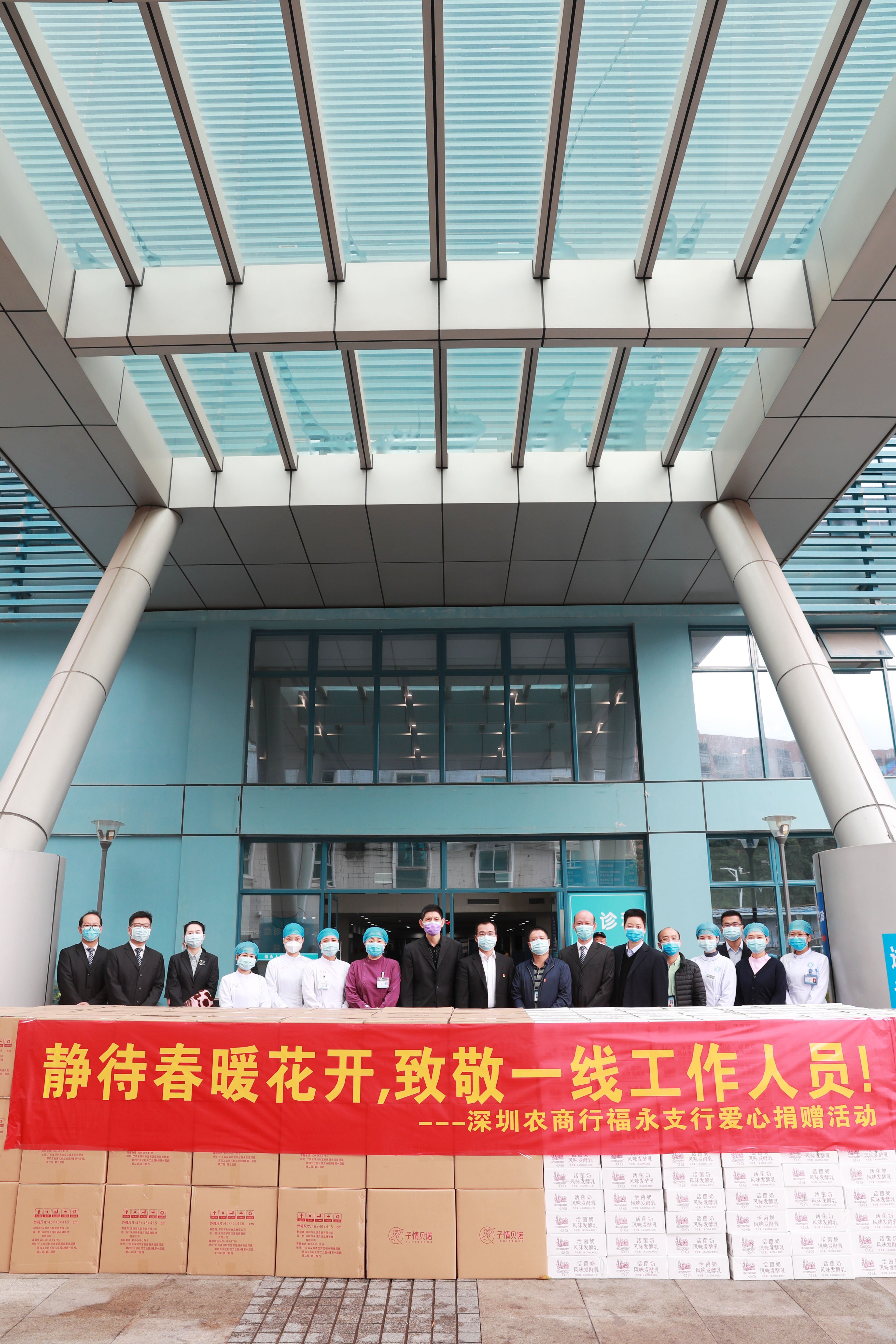 福永人民醫(yī)院堅(jiān)守在福永街道抗疫前線,守護(hù)著福永和福海近百萬人的健康,為感謝福永人民醫(yī)院醫(yī)務(wù)人員加班加點(diǎn)忘我奮戰(zhàn),深圳農(nóng)商行福永支行選購了1500盒糕點(diǎn)和1500箱酸奶送到福永人民醫(yī)院,表達(dá)他們對(duì)醫(yī)務(wù)工作者“舍小家、為大家”的崇高敬意。