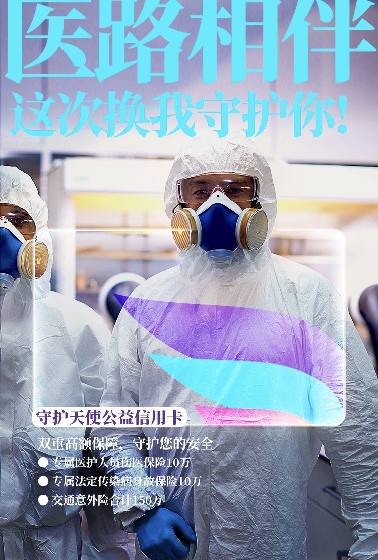 從個(gè)人生病就醫(yī),到全國性公共衛(wèi)生突發(fā)事件,醫(yī)護(hù)群體總是沖鋒在前。而醫(yī)護(hù)人員自身的安全,也需要被守護(hù)。廣發(fā)守護(hù)天使公益聯(lián)名信用卡立足于醫(yī)護(hù)群體最切實(shí)的安全需求,特別配置了雙重高額保險(xiǎn)。