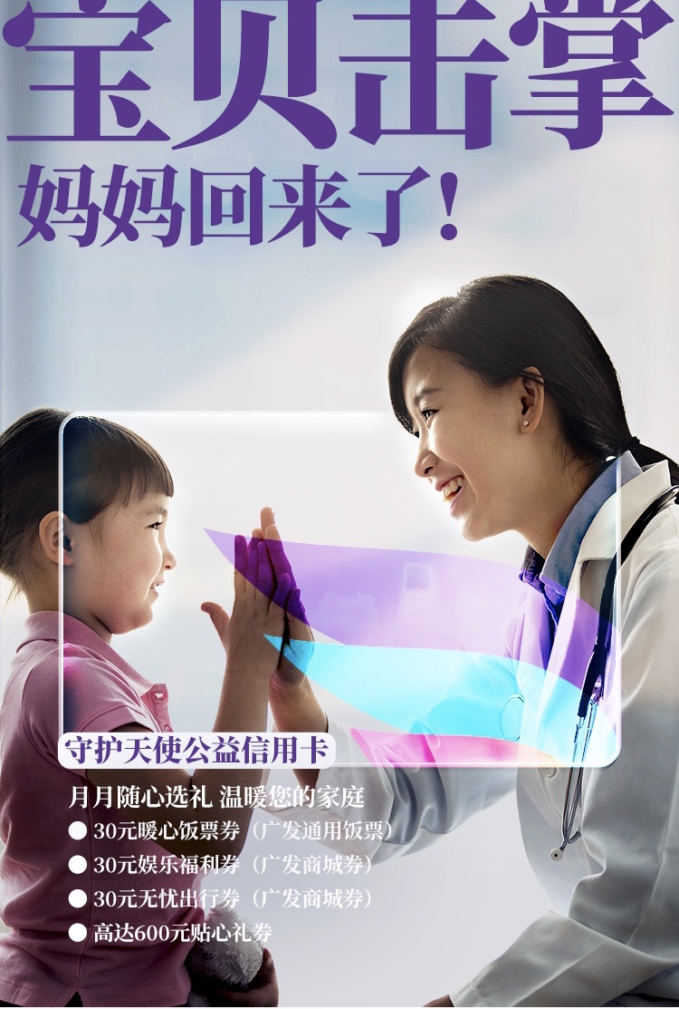 脫下白大褂,醫(yī)護(hù)人員也是一群愛生活愛家庭的人,也喜歡逛淘寶、追劇、和朋友吃吃喝喝享受生活。廣發(fā)守護(hù)天使公益聯(lián)名卡將服務(wù)延伸到醫(yī)護(hù)群體的日常生活,為持卡人提供5倍積分、月月消費(fèi)禮券、高端出行服務(wù)等豐富的權(quán)益。