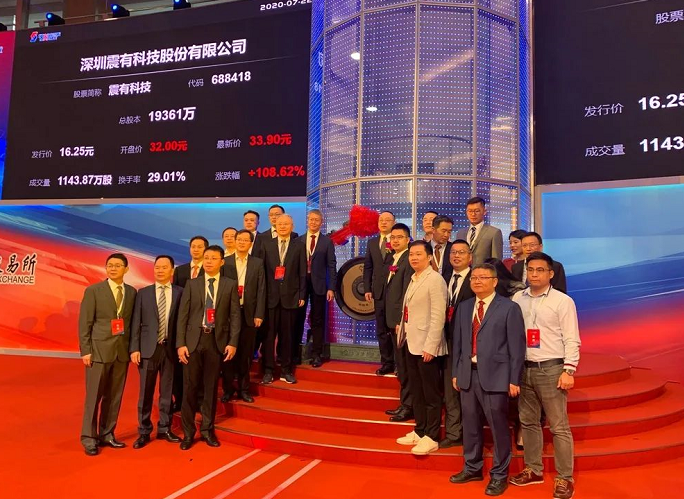 見圳客戶端·深圳新聞網(wǎng)7月24日訊 7月22日,科創(chuàng)板開市一周年的重要時刻,浦發(fā)銀行深圳分行又一家科技金融客戶迎來了發(fā)展歷程中的里程碑時刻。深圳震有科技股份有限公司(股票代碼:688418,股票簡稱:震有科技)首次公開發(fā)行A股并在科創(chuàng)板掛牌。上市首日,震有科技開報32元/股,股價最高漲幅超過190%,市值超90億元。