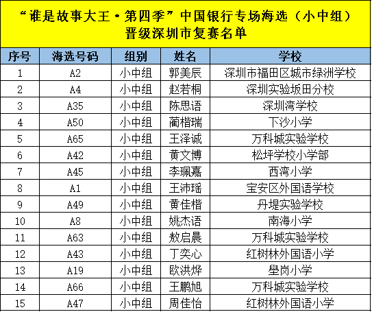 見(jiàn)圳客戶端·深圳新聞網(wǎng)2020年11月16日訊 (記者 陳彬 曹園芳 潘寶儀)讓閱讀成為動(dòng)人的風(fēng)景,讓故事的魅力感動(dòng)深圳!11月14日,“中國(guó)銀行-誰(shuí)是故事大王·第四季”中行專場(chǎng)海選在深圳商報(bào)社大廈成功舉行,來(lái)自深圳市各區(qū)學(xué)校的100余名學(xué)生參加了比賽。經(jīng)過(guò)激烈角逐,小中組深圳市福田區(qū)城市綠洲學(xué)校郭美辰等15名選手,小高組寶安區(qū)松崗實(shí)驗(yàn)小學(xué)王海霏等10名選手,分別晉級(jí)“誰(shuí)是故事大王·第四季”深圳市復(fù)賽,他們將和來(lái)自指定校園分賽區(qū)、特約專場(chǎng)以及深圳新聞網(wǎng)線上賽區(qū)的選手一起爭(zhēng)奪深圳市決賽名額。