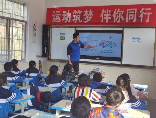 志愿者給孩子們介紹亞運會